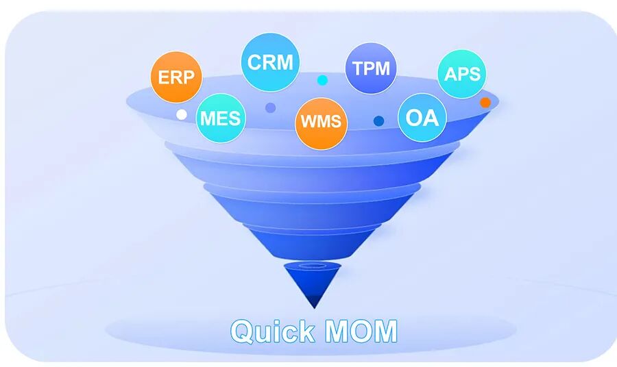 快克数控推出数字化工厂系统QUICK MOM(MOM: Manufacturing OperationsManagement 制造运营管理系统),是一款面向小微企业的经济型通用数字化工厂解决方案。它融合“智能制造+工业互联网平台”,提供一体化、可定制的整体服务。方案基于工业企业的真实转型需求,采用平台化、模块化、流程化、便捷化、可编辑化的设计,有效打通物料、生产与信息三大流,助力企业实现从资源到价值的顺畅转化。